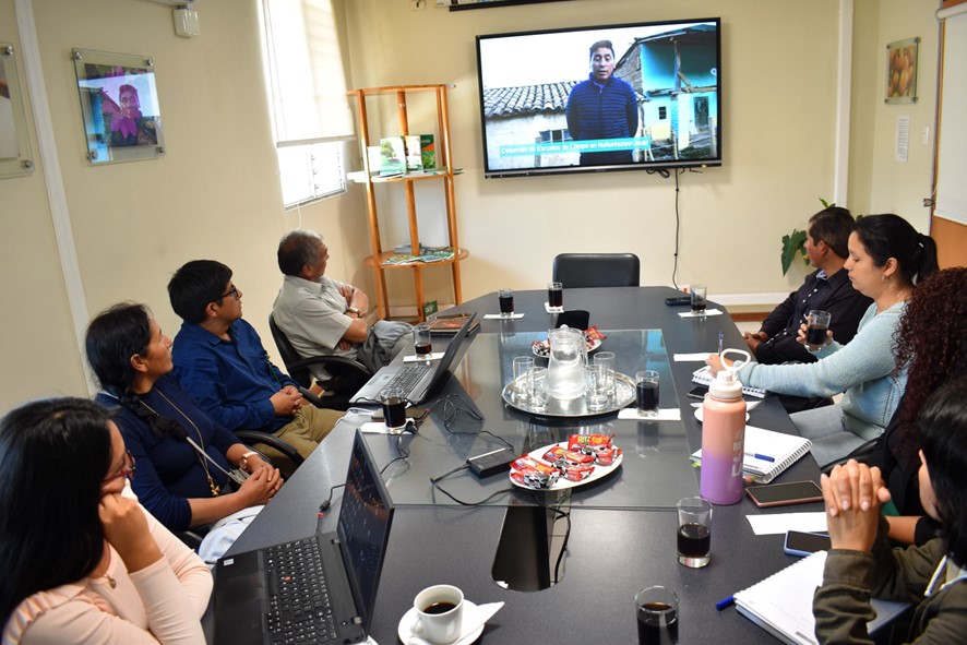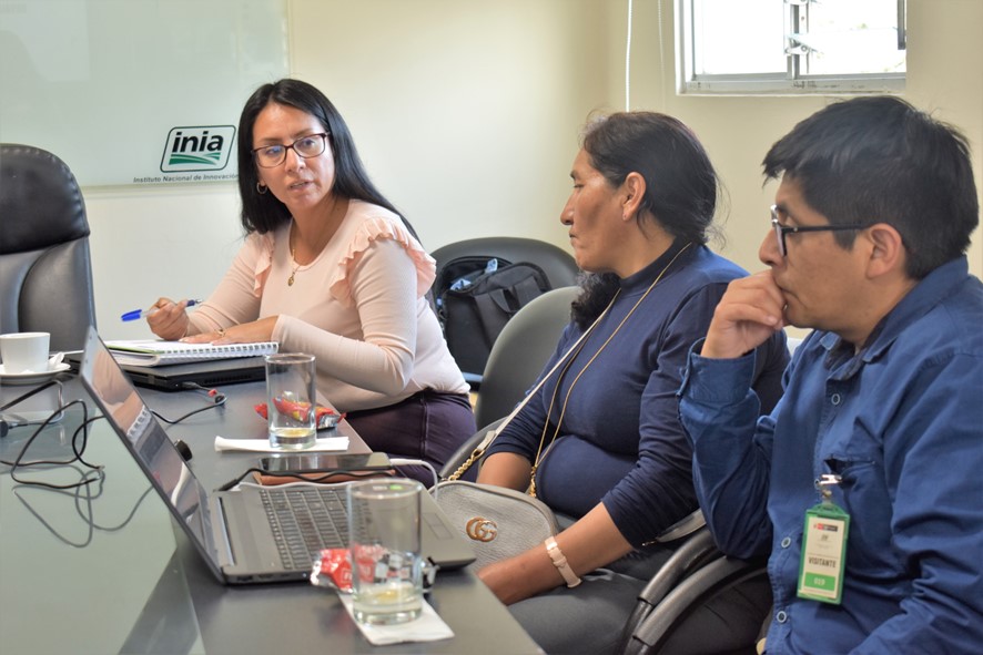 Durante el diálogo se presentó ante la directora de la Subdirección de Recursos Genéticos del INIA, Elizabeth Fernández, y su equipo, las experiencias de las escuelas de campo (ECAs), producción de semillas de calidad de variedades nativas, los resultados del fitomejoramiento participativo en los campos agrarios, el uso de alimento sub utilizados, así como las experiencias de bancos comunitarios de semillas nativas como mecanismo para difundir y garantizar la conservación de la agrobiodiversidad. Estas iniciativas fueron realizadas en el marco del proyecto Sembrando Diversidad=Cosechando Seguridad, implementado por FOVIDA, con el apoyo de Oxfam.