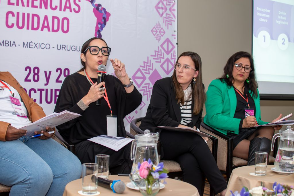 La segunda mesa, centrada en las experiencias internacionales, contó con la participación de Viviana Piñeiro (Uruguay), Diana Vargas (México) y Leonora Maldonado (Colombia), quienes compartieron los aprendizajes de sus países en la institucionalización de sistemas de cuidado.