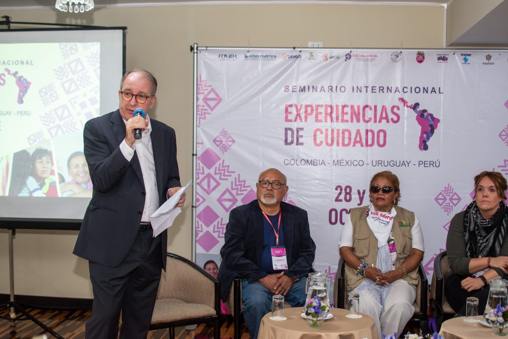 El evento fue inaugurado por José Piqueras, coordinador general de la Agencia Española de Cooperación Internacional para el Desarrollo (AECID) en el Perú; Martha Cuentas, directora ejecutiva de FOVIDA; Rodolfo Alva, director ejecutivo de Alternativa; Rocío Silva, directora de DEMUS; Valle Ramos, representante de Fundación Adsis; y Luz Medina, presidenta de la Red Interdistrital de Mujeres de Lima Metropolitana. Durante la inauguración, se destacó la importancia de fortalecer los vínculos entre las organizaciones de mujeres, la cooperación internacional y las instituciones públicas para consolidar una agenda común por el derecho al cuidado desde los territorios.