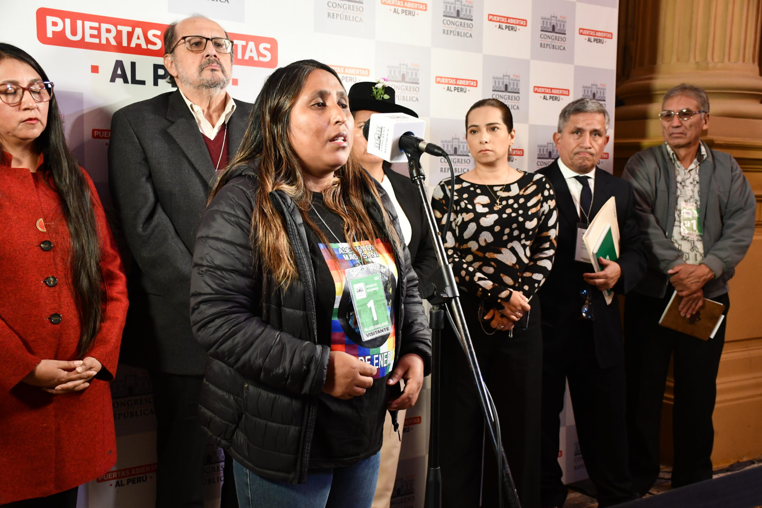 Por su parte, Betty Águila, hermana de una víctima de la represión en Puno, exigió justicia y cuestionó a los congresistas que “legislan a favor de los asesinos, mientras las madres seguimos luchando con niños huérfanos y sin justicia”.